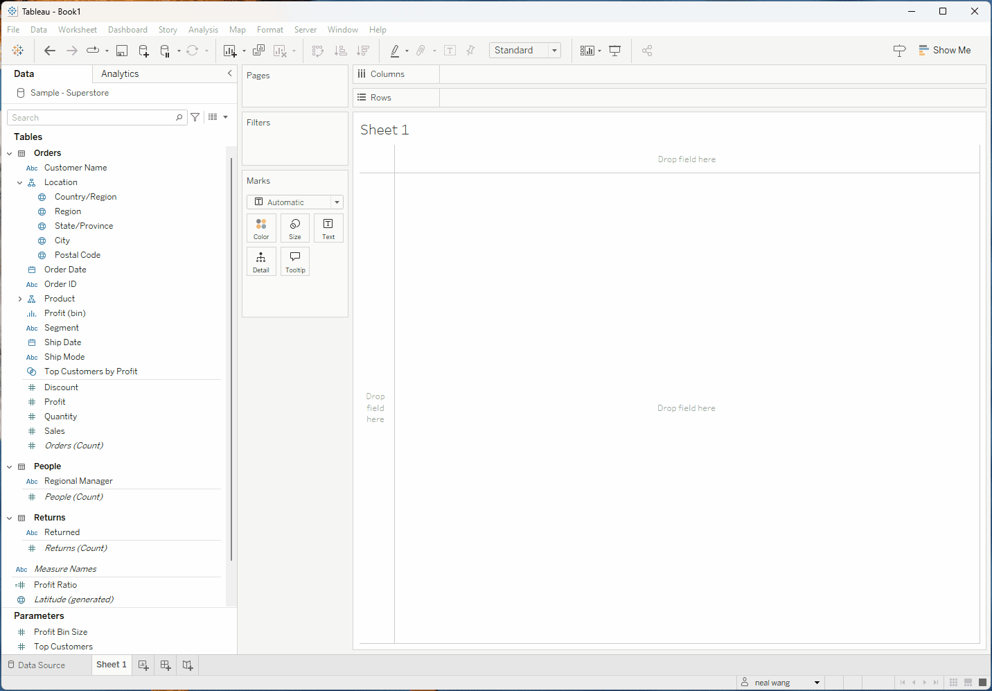 稍微总结一下. 在你双击点这一下之前, 在Sample Superstore里开发者帮你做了两件事: 第一是告诉Tableau, 这一列对应的是城市, 这一列对应的是州等等. 第二件事就是告诉Tableau, 这个postal code对应的是这个城市, 这个省, 这个国家的邮政编码等等